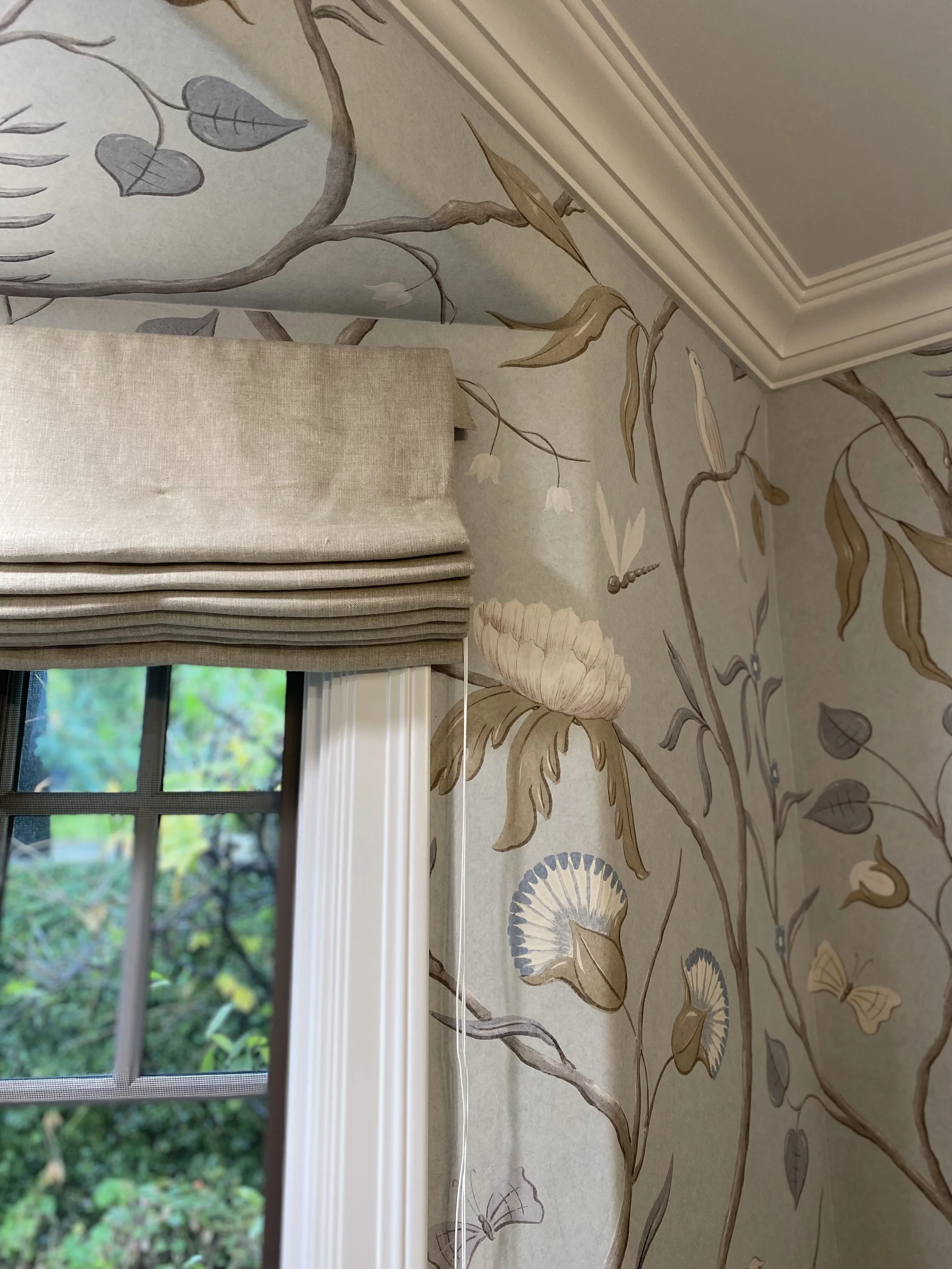 Bespoke cabinetry, hand-applied finishes, and layered wallpaper brought depth and texture to each space, while carefully selected antique furnishings and accessories were introduced to soften the architecture and blur the line between old and new. The result is a home that feels both refined and lived-in — a quiet balance of elegance, warmth, and timeless character.